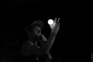 Voilà l’ordre du jour, affiché d’abord par le rétro-projecteur sur la scène, et bientôt ancré dans nos crânes, comme un mantra viscéral. Plutôt laborieusement d’ailleurs, après un bon quart d’heure à croiser les doigts en attendant que le projo veuille bien s’allumer.